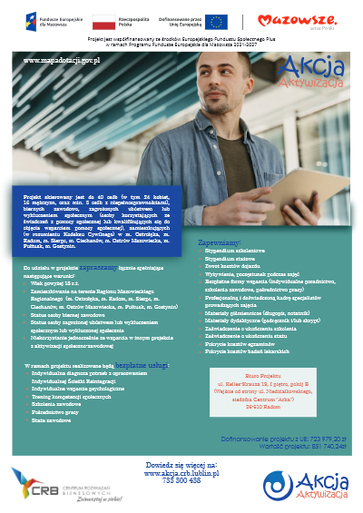 Fundacja Centrum Rozwiązań Biznesowych zaprasza do udziału w projekcie: „Akcja Aktywizacja” - Powiatowy Urząd Pracy w Węgrowie